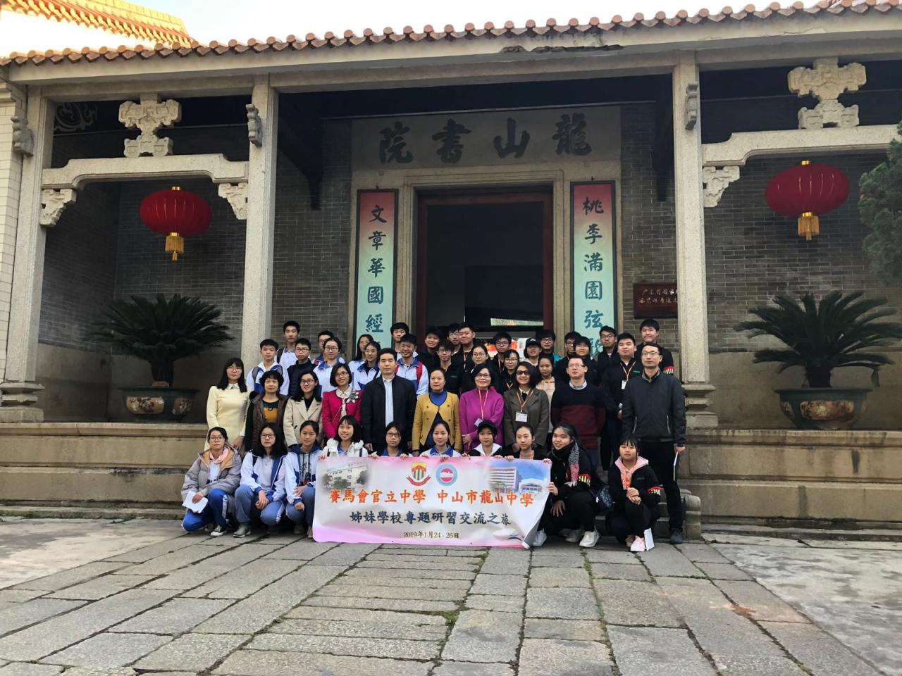 本校謝佩儀老師及黃玉婕老師帶領20名中二至中五學生於2019年1月24至26日前往中山,與中山市龍山中學師生進行專題研習交流活動。